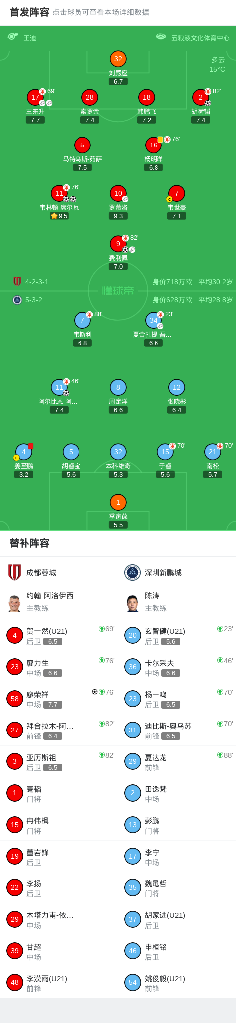 第22分钟,新鹏城调整,夏合扎提被换下,玄智健登场